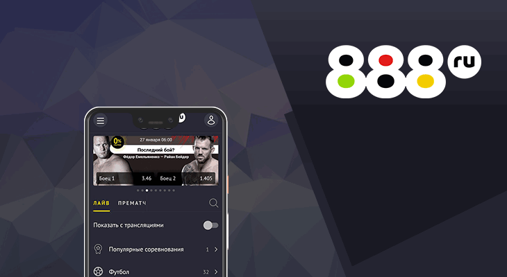 Приложение 888 ru для АйОС и Андройд предлагает ставки на спорт и cyber sport. В режиме live есть визуальная анимация (матч-центр), но видеотрансляций нет. Софт доступен на английском и на русском.
