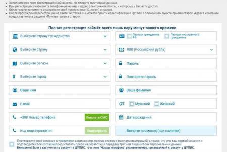 При регистрации в БК «1хСтавка» заполняются такие данные: