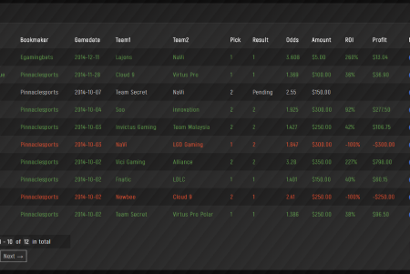 На финальном этапе «Betting Tracker» на основе введенных данных и результатов игр автоматически подсчитывает прибыль/убытки. Статистика визуализируется в привлекательном графическом формате. Также доступны различные таблицы и фильтры: