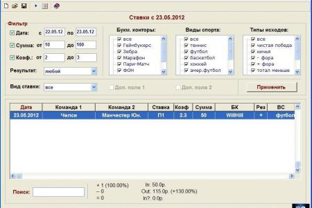Программа Bet Manager на основе внесенных в базу ставок может автоматически рассчитывать: